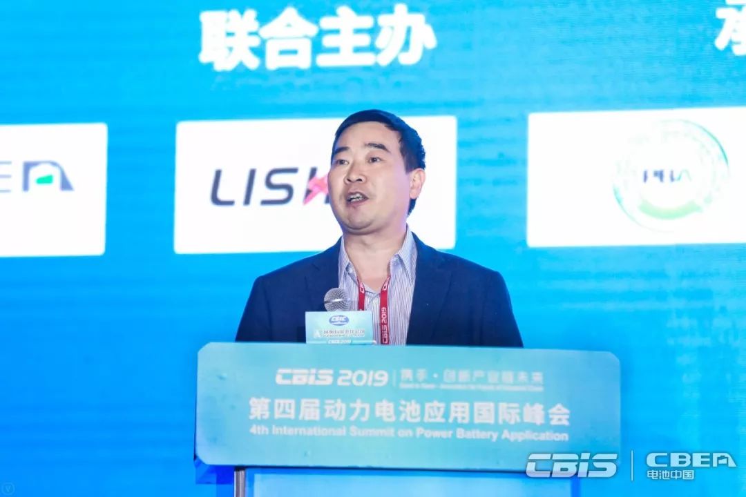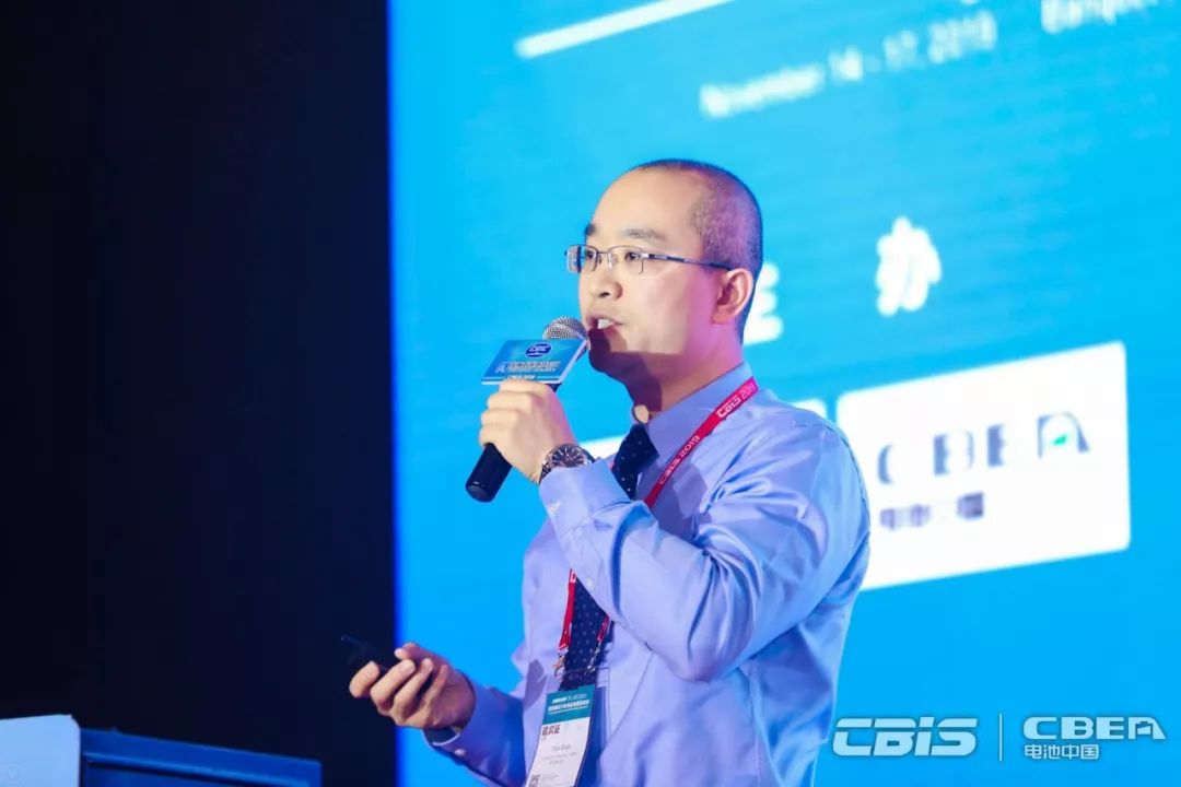 圖為星恒電源股份有限公司電池研究院副院長(zhǎng)趙成龍發(fā)表演講