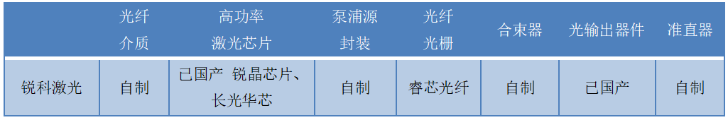 銳科激光核心器件及材料自制情況