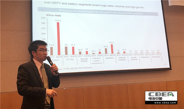 圖為中國·動力電池應(yīng)用分會秘書長、電池中國網(wǎng)CEO張雨發(fā)表演講
