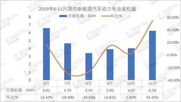 動力電池應用分會統(tǒng)計數(shù)據(jù)顯示,11月份我國動力電池裝機量達到6.29GWh,盡管與去年同期相比仍下降29.49%,但環(huán)比增長了54.29%,是7月份以來的最高點。受今年新能源汽車財政補貼大幅退坡影響,自6月25日過渡期結(jié)束后,新能源汽車動力電池裝機量出現(xiàn)大幅下滑,補貼對動力電池裝機產(chǎn)生較大沖擊。