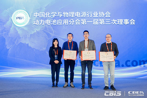 (動力電池應(yīng)用分會秘書長張雨為新增專家委員會委員頒發(fā)證書)
