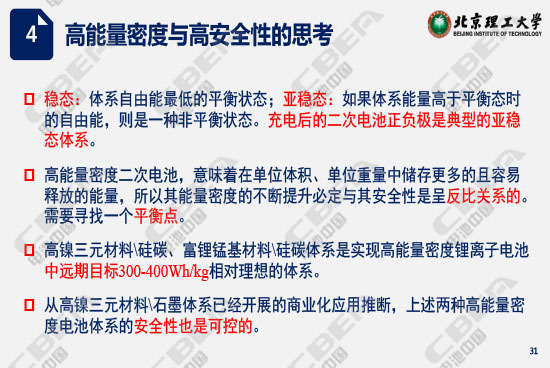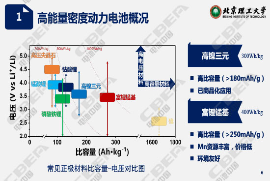北京理工大學(xué)教授蘇岳鋒就“高能量密度動(dòng)力電池關(guān)鍵材料與技術(shù)”作主旨演講,分享了高鎳三元正極材料和富鋰錳基正極材料、以及如何在保證安全性的前提下提升電池能量密度。