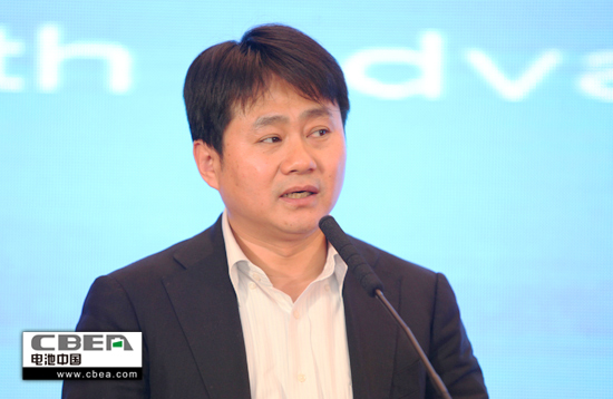 圖為北汽新能源汽車股份有限公司總工程師陳平先生做主題演講