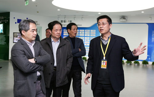 楊新新總裁向吳勝豐副主任介紹集團(tuán)國(guó)內(nèi)外高端人才引進(jìn)情況