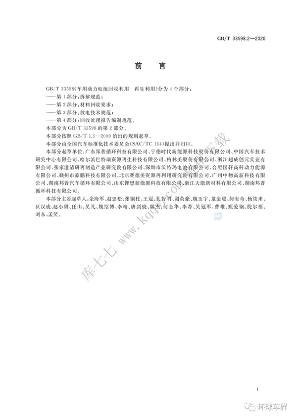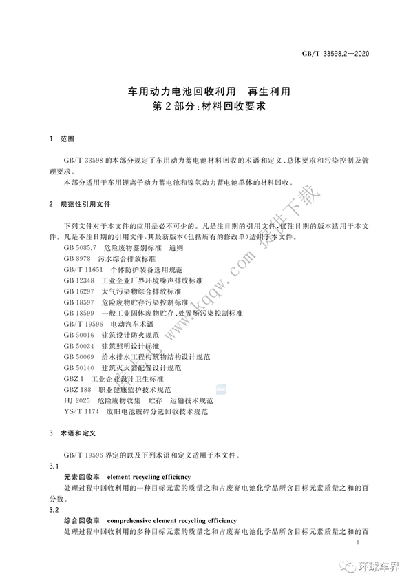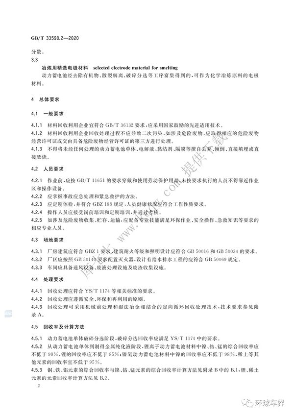 GB∕T 33598.2-2020 車用動力電池回收利用 再生利用 第2部分:材料回收要求