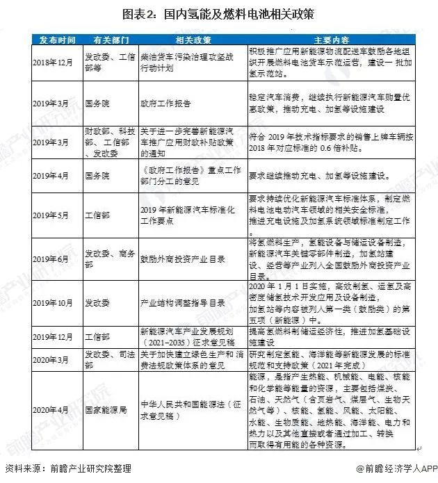 近一年多來,燃料電池頻繁受到政策關注,加氫站建設突出強調。2019年“兩會”期間,氫燃料電池產業首次被納入政府工作報告,之后政策頻出,在2019年12月工信部發布的《新能源汽車產業發展規劃(2021-2035)》(征求意見稿)中,強調了要提高氫燃料制儲運經濟性,推進加氫基礎設施建設。2020年4月10日國家能源局印發《中華人民共和國能源法(征求意見稿)》,明確提出優先發展可再生能源,相較2007年的版本氫能被列入能源范疇。