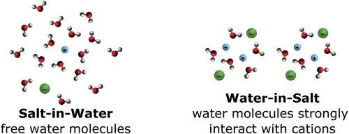 研究人員表示:“水溶鹽電解液指的是極少量的水加高濃度的鹽組成的溶液,水的量剛好能夠溶解離子,促成溶劑的形成。與傳統(tǒng)解決方案不同,該系統(tǒng)不含游離水?!贝送猓挥杏梢粋€(gè)大的陰離子與一個(gè)小的陽離子組成的鹽分子才可被溶解。例如,雙三氟甲烷磺酰亞胺鋰(CF3SO2NLiSO2CF3)、氯化鈉或食鹽都沒有用,因?yàn)樗鼈兊年栯x子和陰離子大小相似。