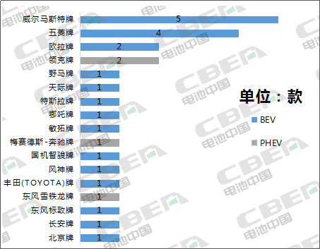 從入選車(chē)型品牌看,造車(chē)新勢(shì)力威馬汽車(chē)生產(chǎn)的威爾馬斯特牌入選5款車(chē)型,排名第一;排名第二的是合資品牌--五菱牌,入選4款車(chē)型;領(lǐng)克牌和歐拉牌分別入選2款車(chē)型,并列第三。從動(dòng)力類(lèi)型看,只有領(lǐng)克牌、東風(fēng)雪鐵龍牌、梅賽德斯-奔馳牌3個(gè)品牌共4款車(chē)型全部為插電式混合動(dòng)力車(chē)型,搭載的動(dòng)力電池均為三元電池。