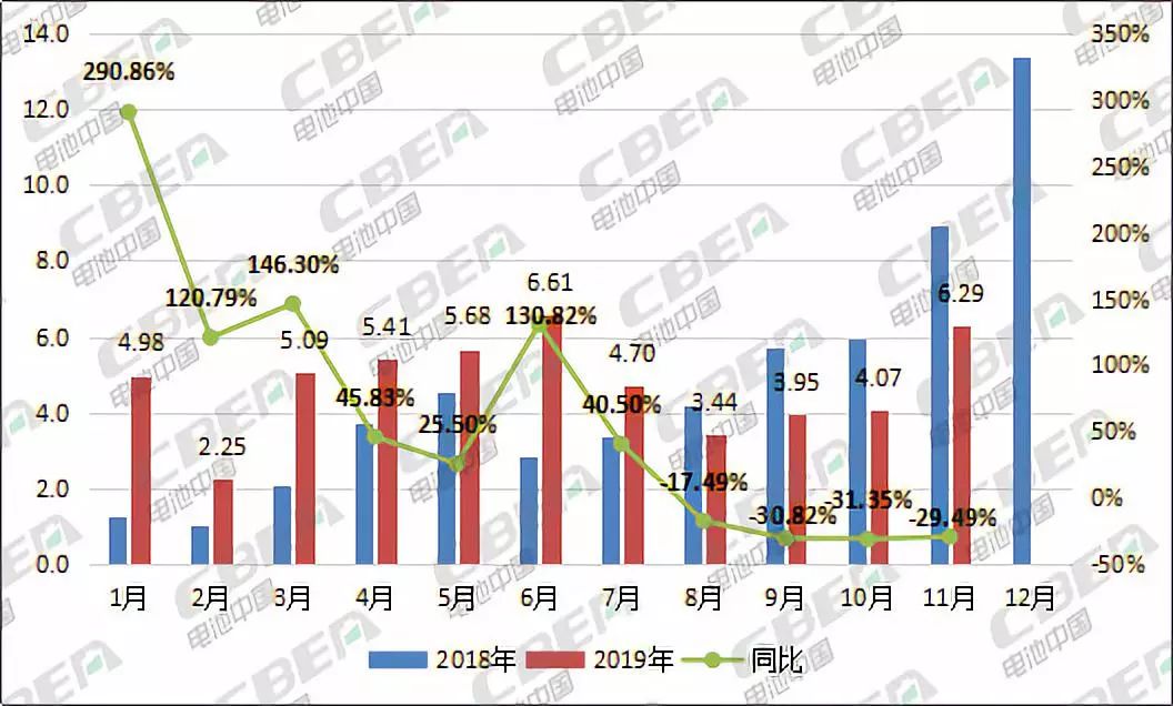 11月,我國動力電池裝機量為6.29GWh,同比下降29.49%,環比增長54.29%。1-11月,我國動力電池累計裝機量為52.47GWh,同比增長20.51%。