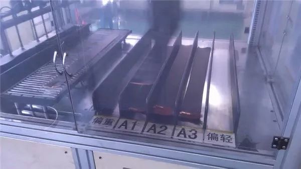 自動化的機器將每段打上鎳帶和絕緣耐高溫的麥拉片(Mylar),下一步進行5個級別的稱重,分別是偏重、A1、A2、A3、偏輕。這個跟CPU晶圓挑選一樣,同一批切割工藝,也會出現不同體質,根據不同體質再分出對應容量,配對出貨。
