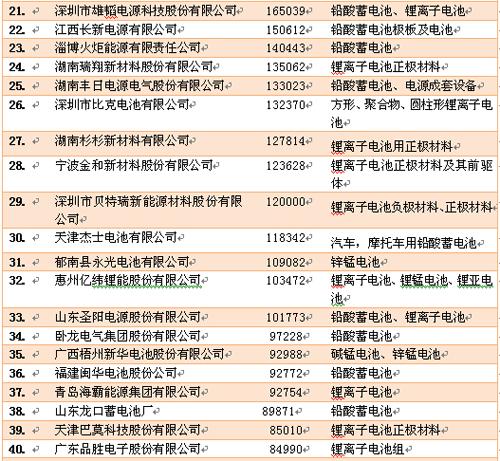 2013年度中國(guó)電池行業(yè)百?gòu)?qiáng)企業(yè)名單