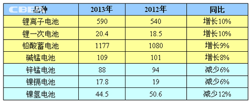 2013年,我國電池行業總體發展較為平穩。以鋰離子電池為代表的新型電池發展迅猛;鉛酸蓄電池發展呈穩健上升趨勢;鋅錳電池產量稍降;鎳鎘電池、鎳氫電池和堿錳電池產量降幅較大。