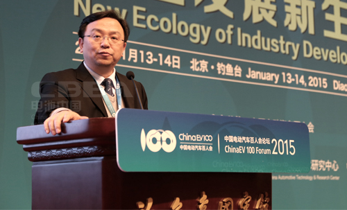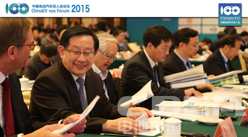 比亞迪股份公司董事長王傳福在論壇上做主題演講