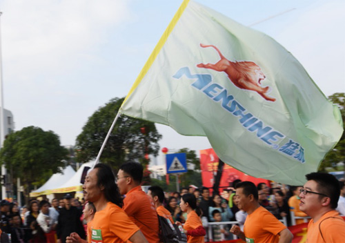 比賽期間,猛獅科技的參賽選手高舉印有猛獅LOGO的旗幟,在數(shù)千人的參賽隊伍中分外惹眼。憑著根植于內(nèi)心的“頑強拼搏、勇往直前”的運動精神,猛獅科技參賽選手在馬拉松賽道中畫出一道靚麗的風(fēng)景線,為本屆賽事增添了絢麗的風(fēng)采。