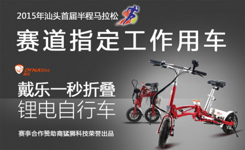作為“2015年汕頭半程馬拉松賽”賽事合作贊助商,猛獅科技旗下的戴樂一秒折疊鋰電自行車成為“賽道指定工作用車”,而這款車也是猛獅科技踐行“綠色健康生活主張”的一款時尚產(chǎn)品。