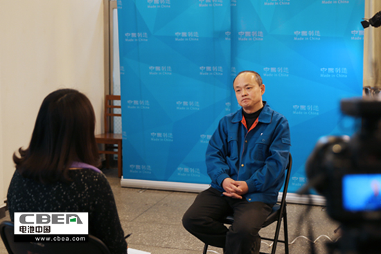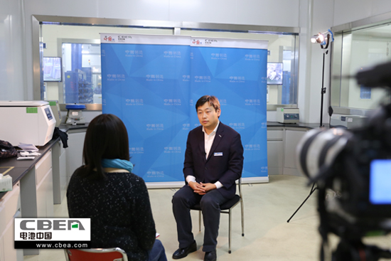 圖為超威電源有限公司市場部總監(jiān)楊享川接受采訪