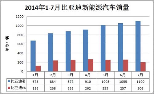 近日,比亞迪汽車銷售有限公司副總經理李云飛在微博上公布了比亞迪7月的銷量情況。數據顯示,比亞迪秦7月銷售1100輛,1-7月累計6457輛;e6電動車206輛,1-7月累計售出1597輛。今年1-7月比亞迪新能源乘用車累計銷量達8054輛。
