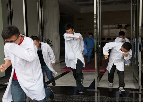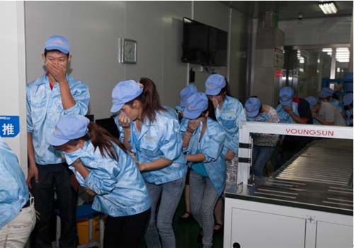演習中,300余名超威員工根據(jù)所掌握的逃生技巧,捂鼻彎腰前行,分別從四個安全出口撤離到指定地點,整個過程反應迅速,井然有序。隨著兩名救護人員將一名傷員搶救出火場后,演習畫上了圓滿的句號。
