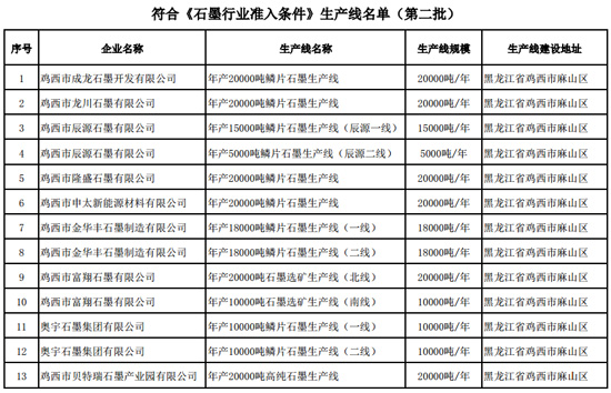 附件:符合《石墨行業(yè)準(zhǔn)入條件》生產(chǎn)線(xiàn)名單(第二批)