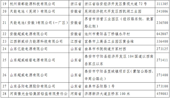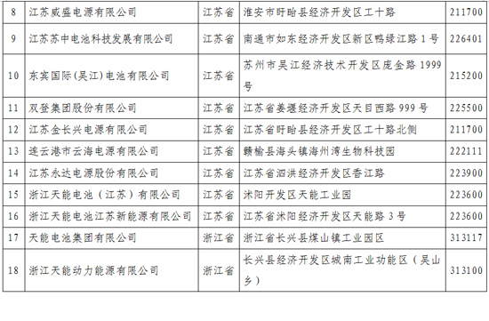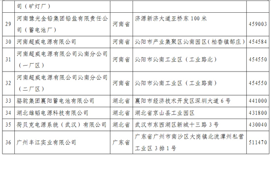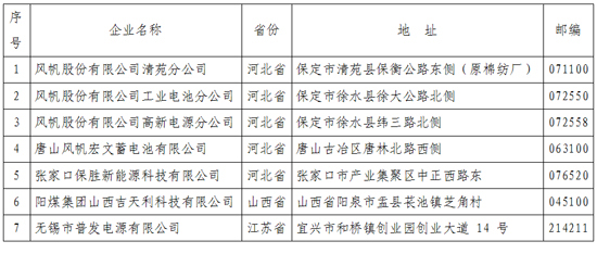 《鉛蓄電池行業規范條件》企業名單(第一批)
