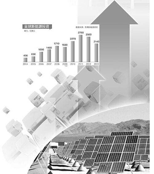 投資者對政府扶持政策未來不確定性的擔憂,是導致全球新能源投資下降的主要原因之一。歐盟最近一年多次透露出要逐步削減甚至取消對太陽能、風能、生物質能等新能源產業的補貼,澳大利亞擬削減或廢除國家可再生能源目標等,迫使更多投資者采取觀望態度。新能源投資成本的下降是全球新能源投資下降的另一主因。光伏組件價格已從幾年前的每瓦四五美元降到不足2美元,與此同時,風電機組價格也從每千瓦1.5美元降到0.6美元,設備價格的大幅降低直接拉低了電站投資額總額。2013年全球光伏電站裝機新增39吉瓦,同比增長26%,投資卻下降23%。此外,一些國家自身因素也促使全球新能源產業投資下降。從2011年起,中國的風電就飽受電網輸出能力有限的制約,大量風力發電項目只能苦等配套電網建設。