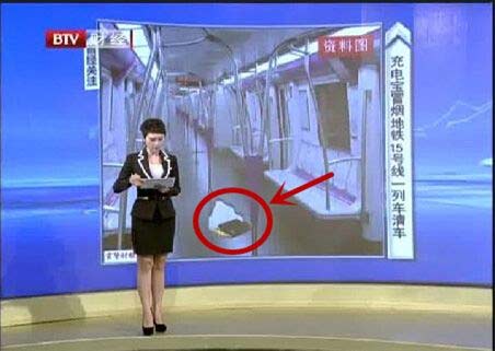 圖1:北京電視臺報道地鐵15號線發生乘客充電寶自燃事件