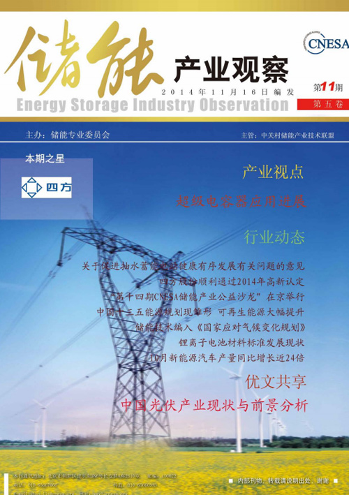 《儲能產業觀察》是由儲能專業委員會主辦、中關村儲能產業技術聯盟主管的儲能普及電子刊物?!秲δ墚a業觀察》第五卷第11期現已發布,內容摘要如下: