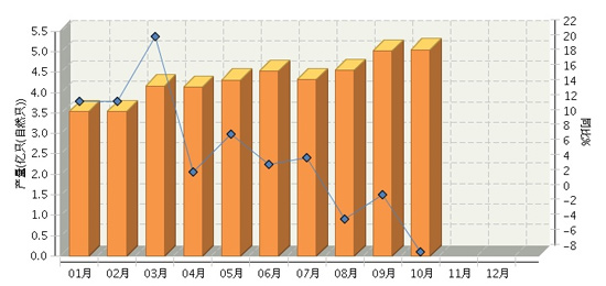 [摘要]根據(jù)國(guó)家統(tǒng)計(jì)局公布數(shù)據(jù),全國(guó)鋰離子電池行業(yè)累計(jì)完成產(chǎn)量43.56億只(自然只),同比增長(zhǎng)4.56%。其中:10月份完成產(chǎn)量5.05億只(自然只),同比增長(zhǎng)-7.48%。