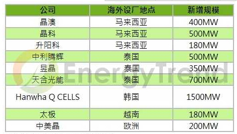 根據(jù)EnergyTrend的調(diào)查研究,許多廠商今年上半年已紛紛宣布將在東南亞或韓國等地新設(shè)產(chǎn)能,在不計印度新增產(chǎn)能的情況下,2015年年底前,僅此亞太區(qū)域的電池產(chǎn)能估計將達4.5GW,只要年底前能順利開出產(chǎn)能,就足夠供應(yīng)美國所需。因此,在這些產(chǎn)能開出后,海外電池的供需可望達到較平衡的狀態(tài),使得中國、臺灣生產(chǎn)的電池價格面臨下跌壓力。