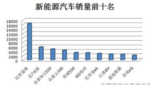 新能源乘用車中,從2015年上半年銷量來看,比亞迪秦以16477輛的成績雄踞榜首,遠超榜單中其他車型。北汽E系列和眾泰E20分別以5903輛和4912輛的成績位居亞軍和季軍。