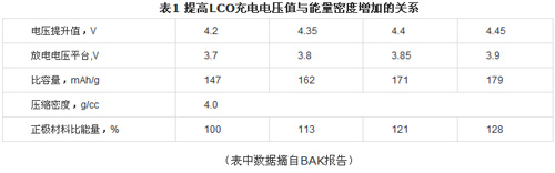 在鋰離子電池廠家的IT鋰離子電池能量密度不斷提升的路線圖上,采用提高LCO充電電壓的技術(shù)路線得到普遍采納。表1列出了LCO充電電壓提高值對(duì)能量密度提升的貢獻(xiàn),顯然這一變動(dòng)就基本上能滿(mǎn)足IT制造商對(duì)電池能量密度提升的要求。然而,除了正極材料本身的穩(wěn)定性措施外,本次論壇重點(diǎn)交流的高電壓功能電解質(zhì)研究與發(fā)展是必須的,否則電池的壽命急速下降而失效。同樣,在實(shí)現(xiàn)動(dòng)力電池比能量提升時(shí),高電壓5V或提高電壓的NMC類(lèi)正極材料也是重點(diǎn)選擇對(duì)象,此時(shí)更需要研究與發(fā)展出合適的高電壓功能電解質(zhì),以在提升鋰離子電池性能基礎(chǔ)上、實(shí)現(xiàn)穩(wěn)定循環(huán)壽命以及電池安全運(yùn)行等要求。本次論壇幾位電池制造商的報(bào)告充分顯示了功能電解質(zhì)應(yīng)用于電池產(chǎn)品的效果與成果,如BAK采用4.4VLCO的聚合物電池產(chǎn)品,常溫循環(huán)壽命可由無(wú)功能添加劑的200余次(80%)增至有高電壓添加劑的400次以上(90%);又如力神的346974聚合物電池產(chǎn)品采用含高電壓添加劑的功能電解質(zhì),在4.4V/3V下比能量超過(guò)650Wh/L,循環(huán)600次容量保持率>90%,電池膨脹率<8%等。