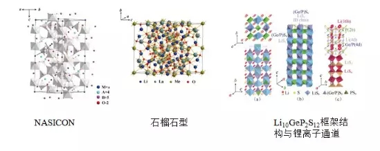 圖14 三種無(wú)機(jī)鹽固體電解質(zhì)的結(jié)構(gòu)圖(取自金永成報(bào)告)
