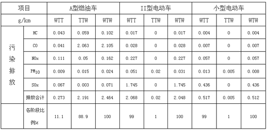 燃油汽車的能耗和污染及排放主要集中在燃料使用階段,而電動(dòng)汽車的能耗和污染及排放主要集中在燃料生產(chǎn)階段。大功率的電動(dòng)汽車除HC和CO的生命周期排放量低于燃油汽車外,其余的NOx、PM和SOx等污染物排放均大于燃油汽車的生命周期排放量。電動(dòng)汽車在行駛過(guò)程中基本做到零排放,但其良好的清潔性是通過(guò)將廢氣排放物轉(zhuǎn)移到電動(dòng)汽車的上游制造端和發(fā)電側(cè),把空氣污染物從城市轉(zhuǎn)移到遠(yuǎn)離城市的周邊地區(qū)和發(fā)電能源基地來(lái)實(shí)現(xiàn)的。2013年我國(guó)冬季的霧霾從原來(lái)的部分城市局部現(xiàn)象向全國(guó)區(qū)域性的轉(zhuǎn)變,因此僅通過(guò)汽車廢氣污染物的區(qū)域排放轉(zhuǎn)移難以從根本上緩解我國(guó)的霧霾現(xiàn)狀。從表中數(shù)值,可以再次得到,在我國(guó)當(dāng)前的能源結(jié)構(gòu)下,電動(dòng)汽車小型化才能保證實(shí)現(xiàn)全生命周期內(nèi)的節(jié)能減排。