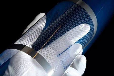 在參觀時人們發現,原來距離自己遙遠的工業材質,可以離自己這么近,近距離感受黑科技的感覺可以這么好。在展示中,一塊透明的薄膜引起了人們的注意。